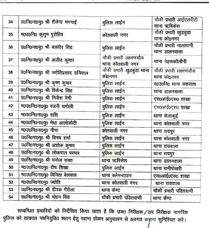 देहरादून में बड़ा पुलिस फेरबदल: 54 अफसरों के तबादले, कई थानों में नई तैनाती